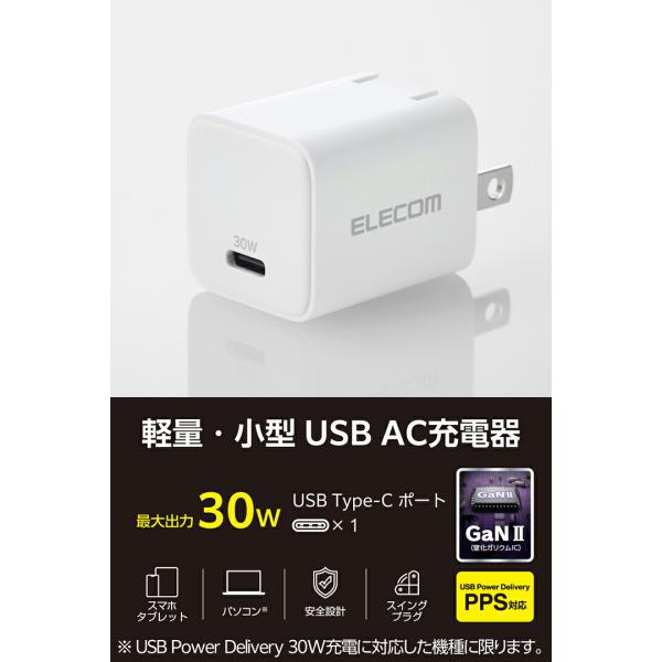 エレコム AC充電器 USB Power Delivery 30W Type-C x 1ポート USB 充電器 ホワイト EC-AC10230WH