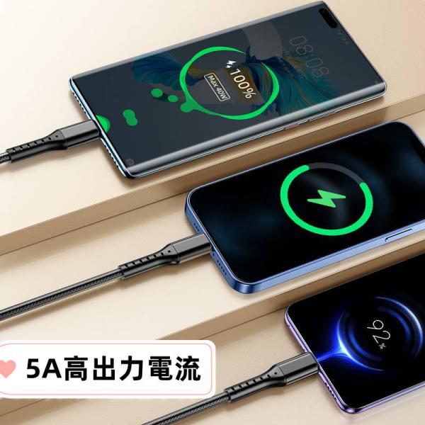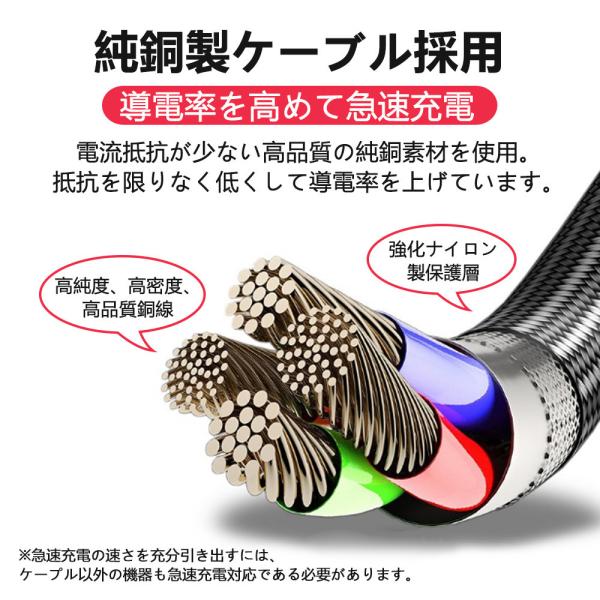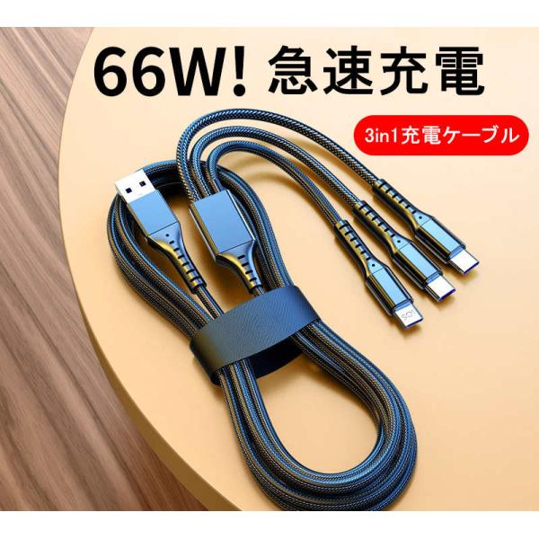 【製品更新】充電ケーブル iPhone アンドロイド タイプC スマホ 3in1 同時急速充電 安定 最大5A 1.2m