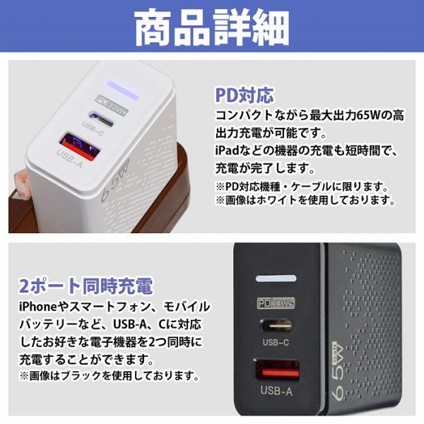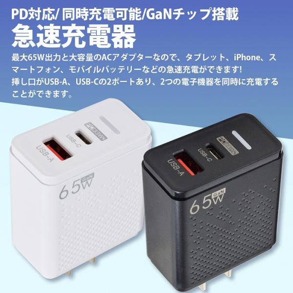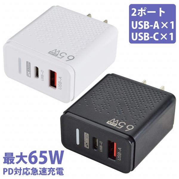 65W 急速充電器 type-c +USB 2ポート タイプC コンセント スマホ iphone 同時 充電 アダプター USB type-A 黒 ブラック/白 ホワイト