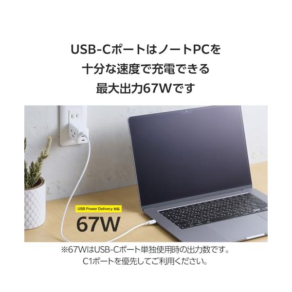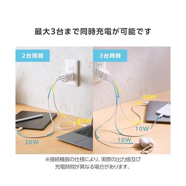 エレコム 充電器 合計65W 3ポート Type-C USB PD対応 スイング式プラグ採用 しろちゃん EC-AC11267WF
