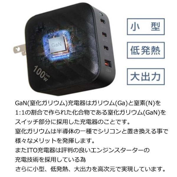 【ホワイト】ITO-PD 100W 充電器 急速充電 急速充電器 GaN 窒化ガリウム USB QC PD 5A 4ポート ACアダプター PSE 1年保証 L1645 88 爆買