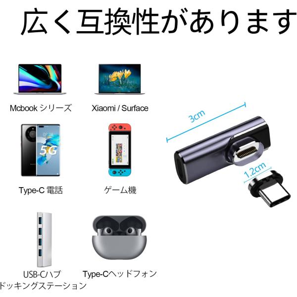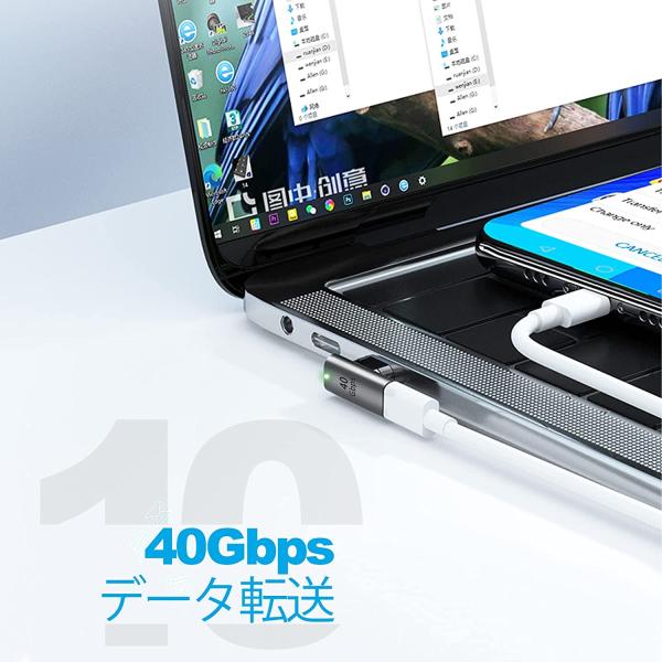 Thunderbolt3対応 マグネット USB-C to USB-Cアダプター サンダーボルト3対応 磁気 Type-C 変換 L字型