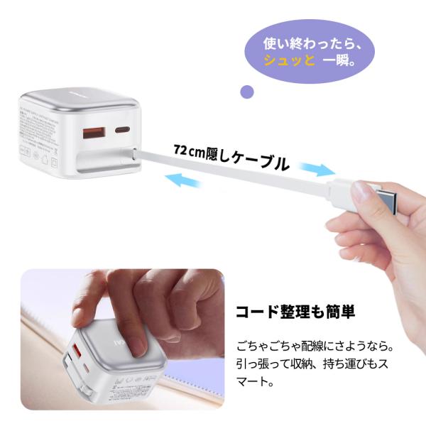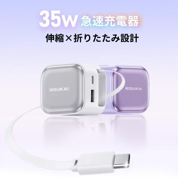 2026年最新モデル★iPhone17 e 充電器 35W pd 急速充電 type-c usb iphone16 ノートパソコン ACアダプター 巻き取り式 充電ケーブル付き コンセント 3ポート