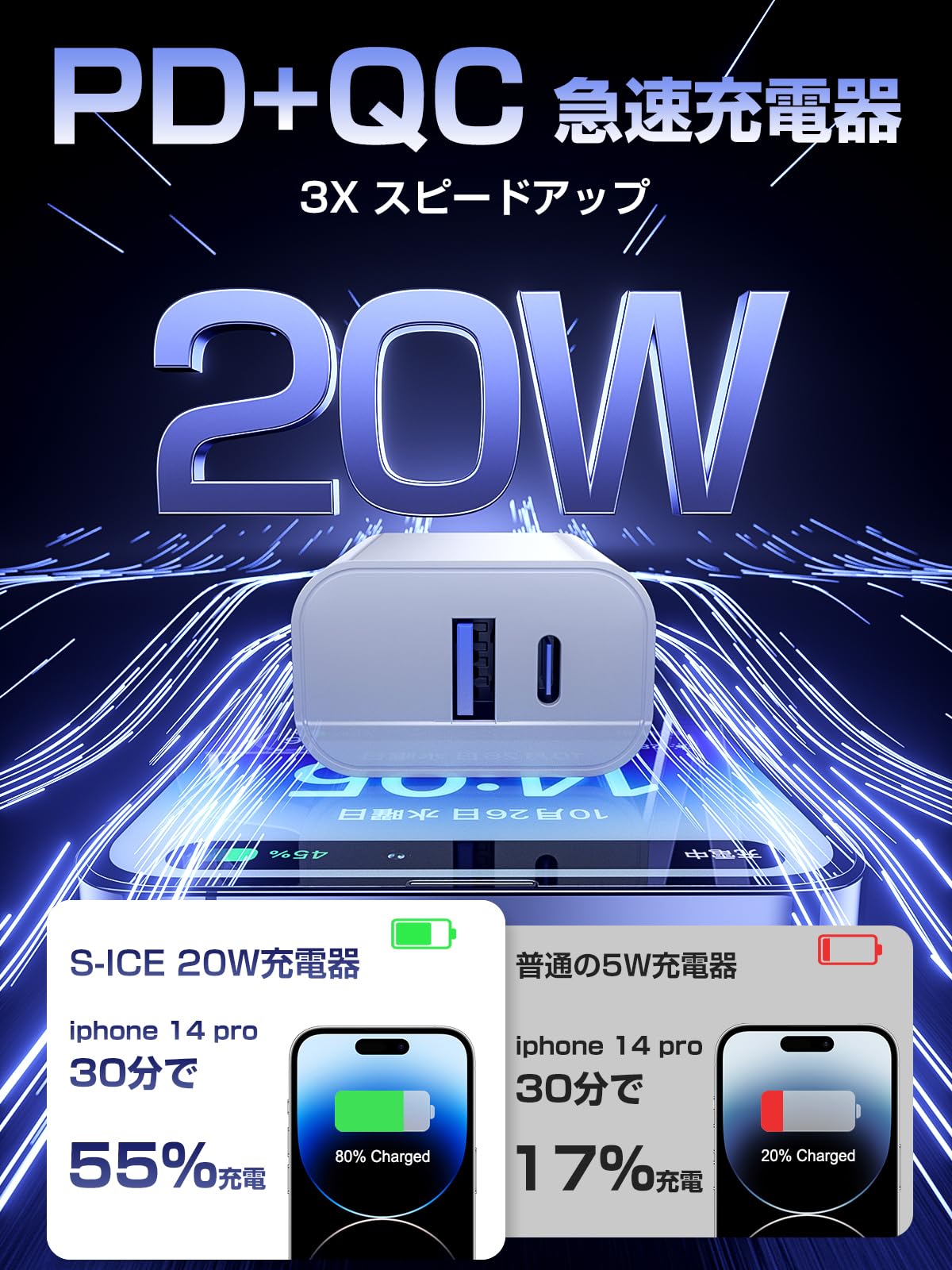 iphone 充電器 アダプター AC式充電器 pd 20W USB-C 急速充電器 iphone13 iPhone12スマホ充電器 2ボート同時充電 タイプC PDアダプター 急速充電 タブレット