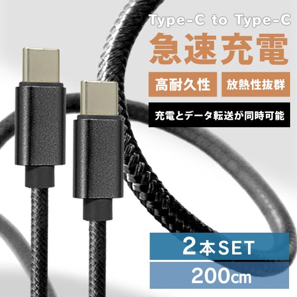 タイプC ケーブル 充電ケーブル 2本セット Type-C to Type-C 2m 充電器 急速充電 断線防止 高性能チップ USB ナイロン編み iPhone15