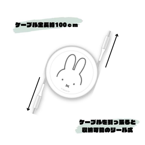 タイプCケーブル リール式 巻き取りケーブル 1m ミッフィー データ転送 充電 かわいい キャラクター Type-C ケーブル USB2.0 PD60W 100cm 充電器 伸縮