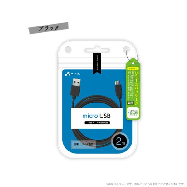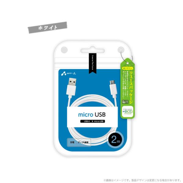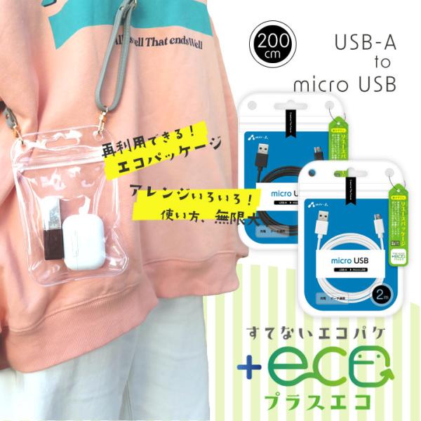 +ECO microUSBケーブル 充電 データ通信 2m USB-A to micro USB ブラック ホワイト メール便送料無料