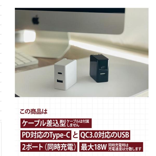 スマホ充電器 小型 USB コンセント【PD+QC3.0 18W 2ポート 急速充電 iPhone13 12 11 s21 s20 推奨】 パワーデリバリー 【Type-C+USB 】