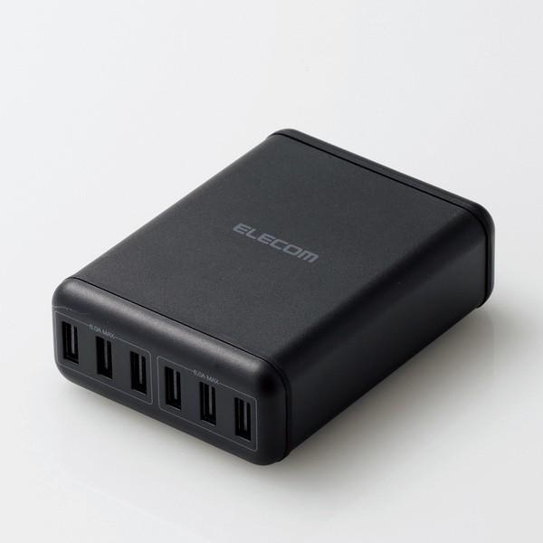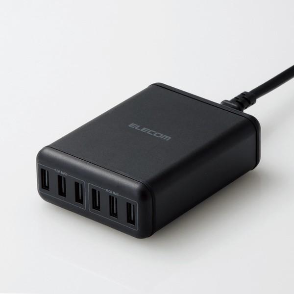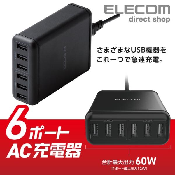 エレコム スマートフォン・タブレット 用 6ポート AC 充電器 USB-A 6ポート おまかせ充電 スマホ 充電 電源ケーブル 1.5m ブラック ブラック MPA-ACD03BK