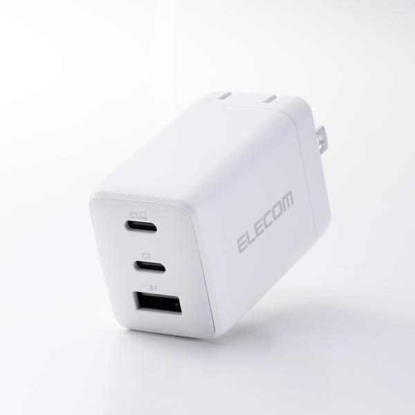 エレコム ノートPC用 ACアダプター USB Power Delivery 67W AC充電器 C×2+A×1 USB充電器 Type-C ×2 USB-A ×1 スイングプラグ ホワイト EC-AC10367WH