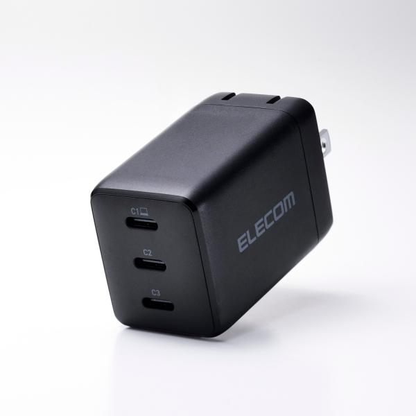 エレコム ノートPC用 ACアダプター USB Power Delivery 67W AC充電器 C×3 USB充電器 Type-C ×3 スイングプラグ ブラック EC-AC11267BK