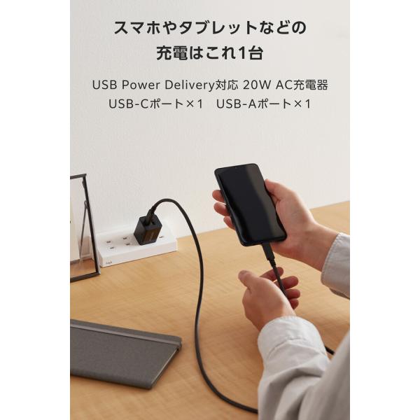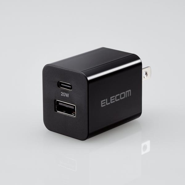 エレコム スマホ・タブレット用 AC充電器 USB Power Delivery 20W USB Power Delivery対応 USB 充電器 Type-C USB-A スイングプラグ ブラック EC-AC12020BK