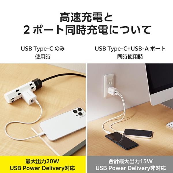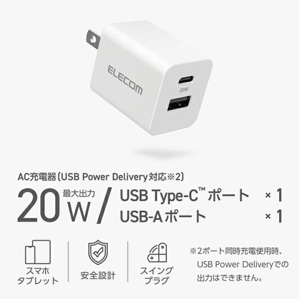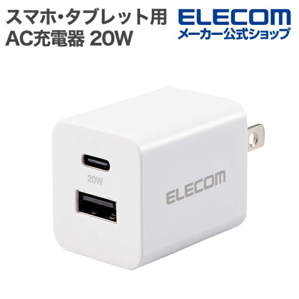 エレコム スマホ・タブレット用 AC充電器 USB Power Delivery 20W USB Power Delivery対応 USB 充電器 Type-C USB-A スイングプラグ ホワイト MPA-AC12020WH