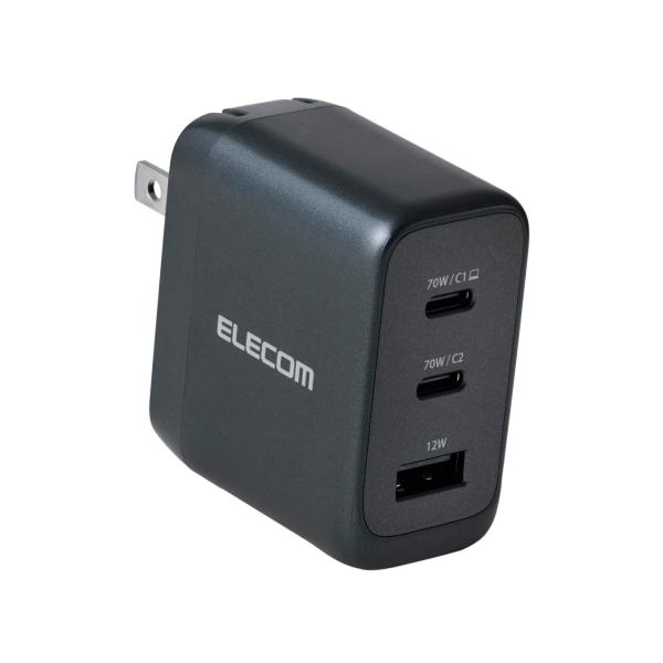 エレコム AC充電器 AdjustCharge搭載 70W C×2+A×1 スマホ・タブレット用 AdjustCharge搭載 USB Power Delivery Type-C×2 ミッドナイト ELECOM EC-AC12770MN