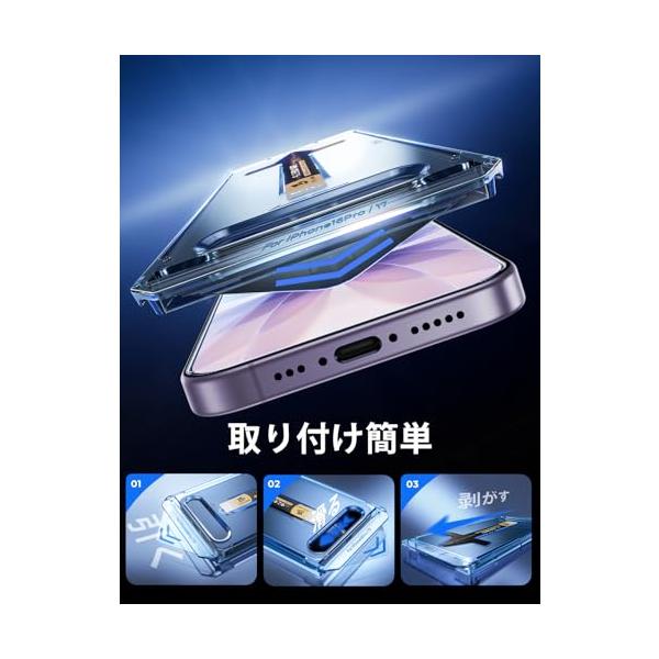 【光沢】MAGIC JOHN 対応 iPhone 17 ガラスフィルム 2枚セット ガイド枠付き 自動吸着 貼りやすい 強化ガラス ズレなく 気