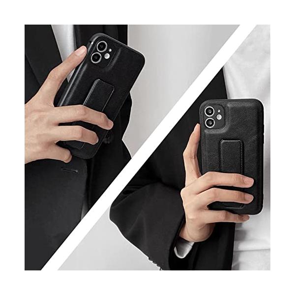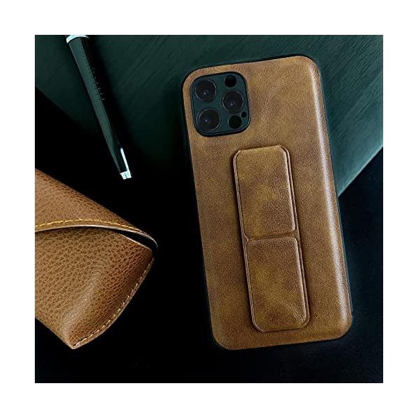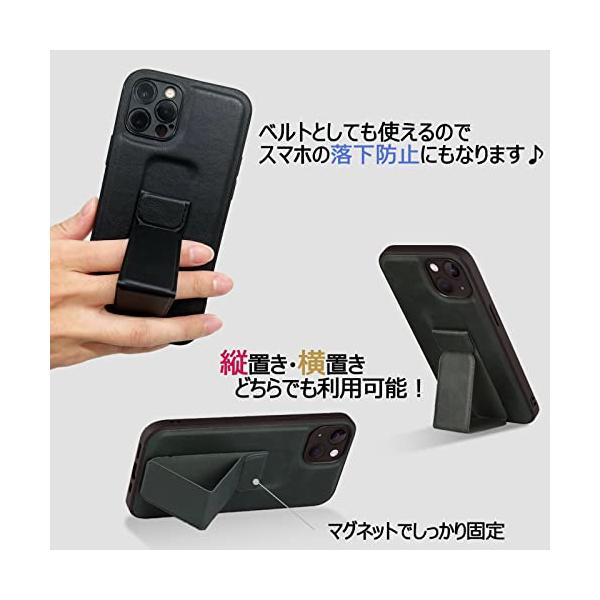 iPhone13/12/12Pro/12mini/SE2nd/7/8スタンド&グリップケース 一体型 2-in-1 縦/横置きマグネット内臓 PUレザー スリムデザイン