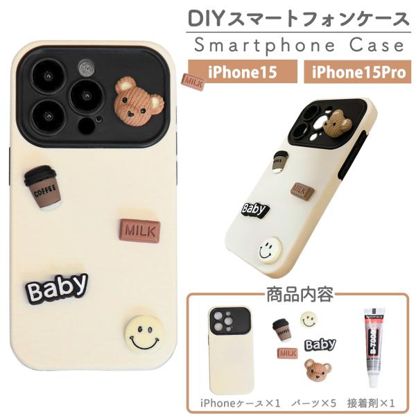 【 iPhone15 / 15Pro 】DIY iPhoneケース 2層ケース カスタム プレゼント 接着剤付き スマホケース 携帯ケース クマ パーツ