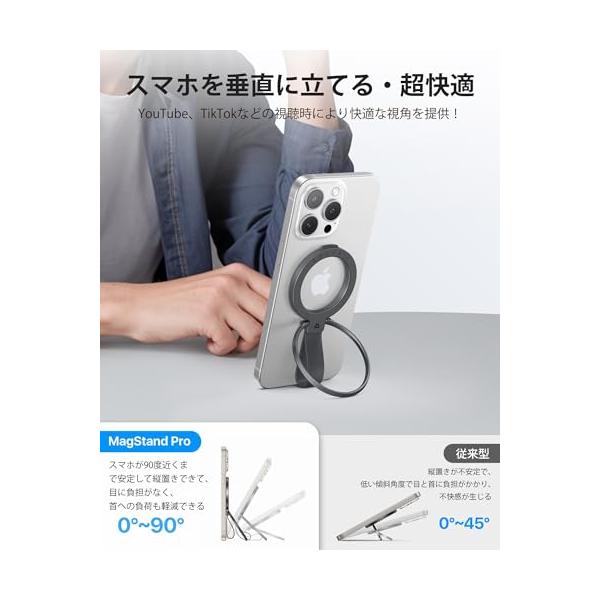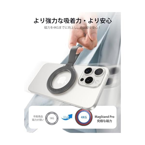 2025最新型・MagStand Pro Andobil スマホリング Magsafe マグセーフ リング 横縦両立機能特化& 超?磁力 バンカ