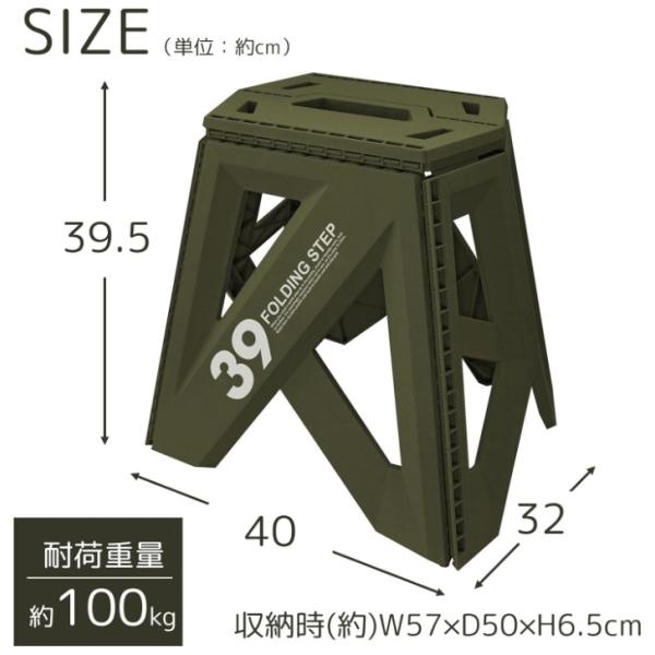 セノ・ビー ソリッド39 カーキ LG-39 ステップ 踏み台 脚立 洗車 高所 折り畳み コンパクト 簡単 収納 軽量 おしゃれ