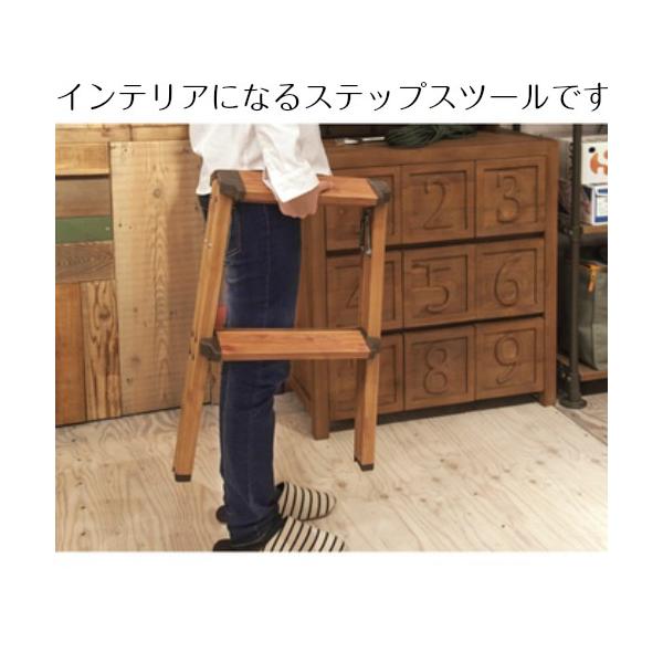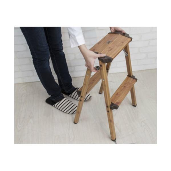 ステップスツール 2段 脚立 アルミ素材 木目調 PC-402