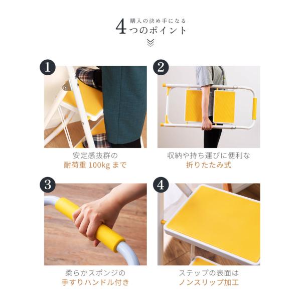踏み台 脚立 折りたたみ スポンジ ストッパーつき 子供 2段 おしゃれ 手すり ステップ台 コンパクト 滑り止め カラフル コンパクト 敬老の日 ギフト プレゼント