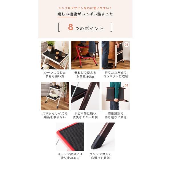 踏み台 脚立 おしゃれ 2段 折りたたみ はしご 梯子 ステップ台 軽い コンパクト 子供 トイレ スリム 北欧 アイアン 白 ブラウン 赤 敬老の日 ギフト プレゼント