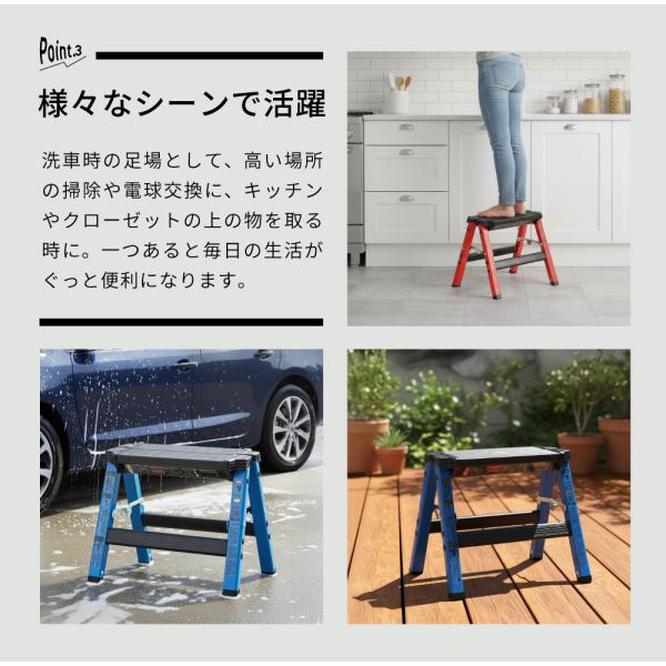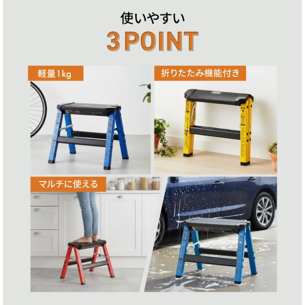 脚立 アルミ おしゃれ 踏み台 ステップ 折りたたみ式 アウトドア アメリカン コンパクト シンプル 高さ29 完成品 青 赤 黄色
