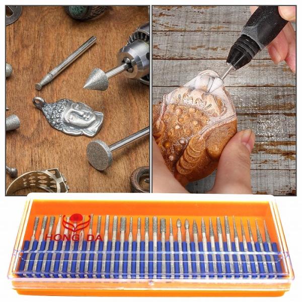 ダイヤモンドビット 30本セット 軸径3mm 電着 ダイヤモンド ミニルーター ミニグラインダー リュータービット 砥石 研磨 #150