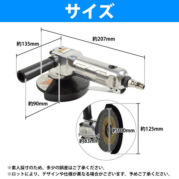 エアー アングルグラインダー 4インチ 100mm エア ディスクグラインダー 研磨 バリ 錆 取り 磨き グラインダー 90度