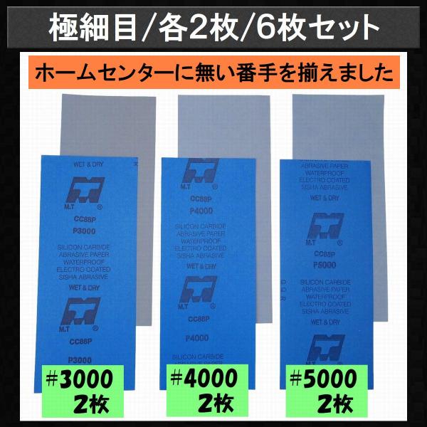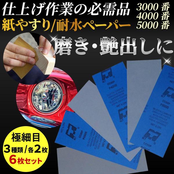 紙ヤスリ 耐水ペーパー 極細目 6枚 セット #3000 #4000 #5000 各2枚 サンドペーパー 耐水ヤスリ 研磨 鏡面 仕上げ