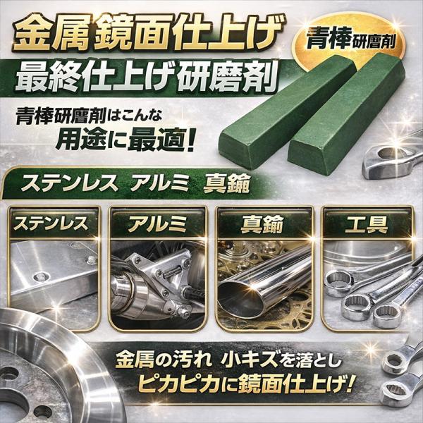 青棒研磨剤 2本セット バフ研磨 金属磨き 鏡面仕上げ 青棒 ステンレス アルミ 真鍮 バイク工具 ODGN2-W150