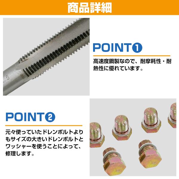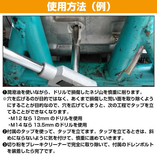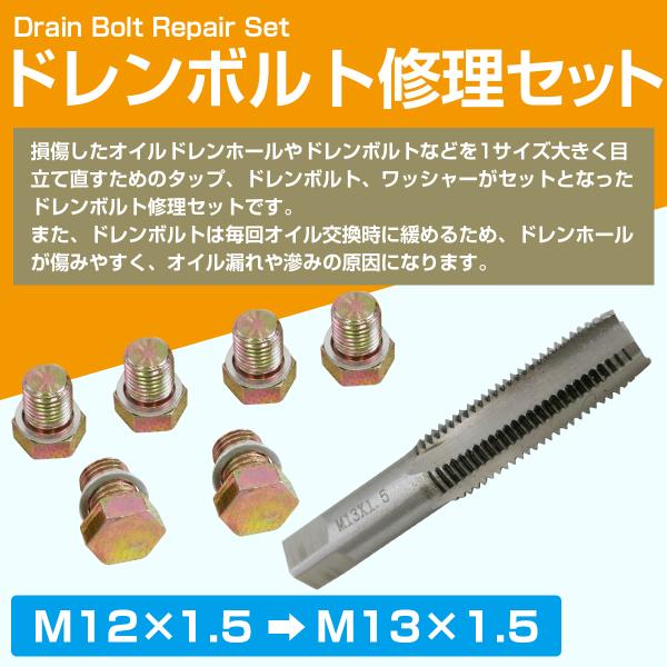 [M12×1.5→M13×1.5] オイル ドレン ホール 修理 セット ネジ 穴 山 修復 補正 タップ ボルト バイク エンジン ミッション