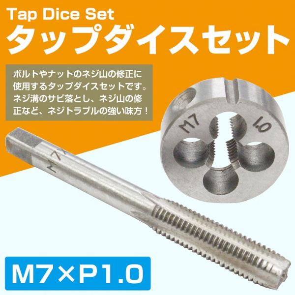 【M7×P1.0】タップダイス セット 目立て ネジ 山 修正 めねじ 再生 ねじ 穴 修復 補強 耐久性向上 雌ネジ 補修 工具 キット