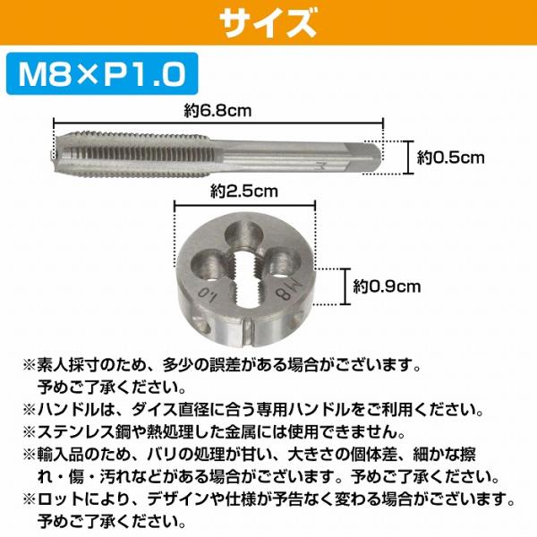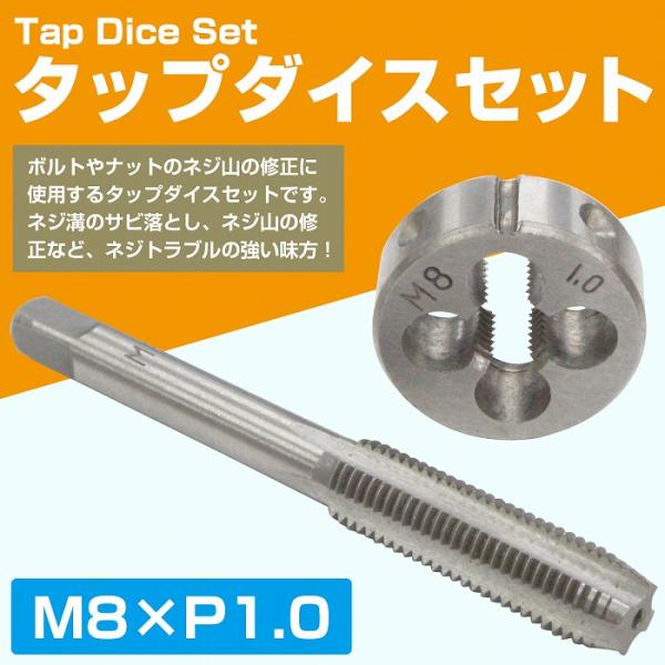【M8×P1.0】タップダイス セット 目立て ネジ 山 修正 めねじ 再生 ねじ 穴 修復 補強 耐久性向上 雌ネジ 補修 工具 キット