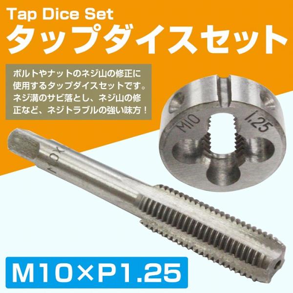 【M10×P1.25】 タップダイス セット 目立て ネジ 山 修正 めねじ 再生 ねじ 穴 修復 補強 耐久性向上 雌ネジ 補修 工具