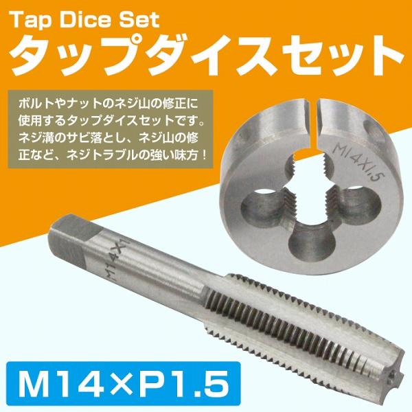 【M14×P1.5】タップダイス セット 目立て ネジ 山 修正 めねじ 再生 ねじ 穴 修復 補強 耐久性向上 雌ネジ 補修 工具 キット