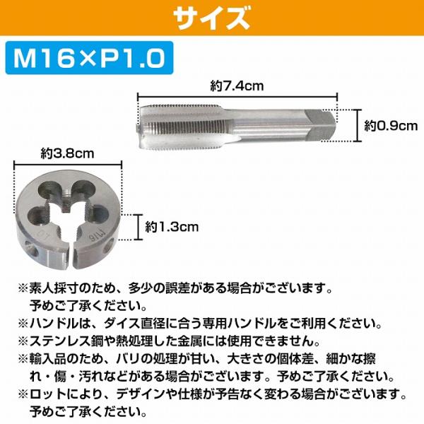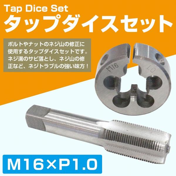 【M16×P1.0】タップダイス セット 目立て ネジ 山 修正 めねじ 再生 ねじ 穴 修復 補強 耐久性向上 雌ネジ 補修 工具 キット