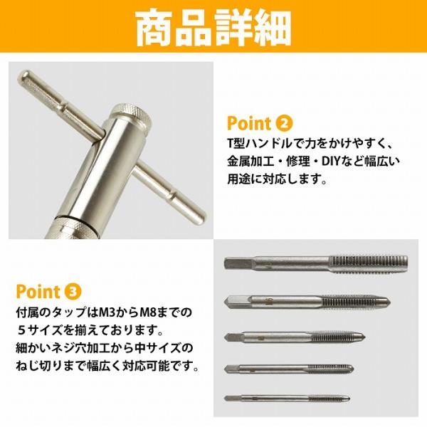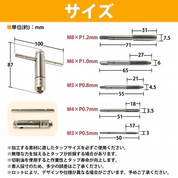 T型 タップレンチ ラチェット タップホルダー ねじ ネジ タップ M3/0.5mm M4/0.7mm M5/0.8mm M6/1.0mm M8/1.2mm 5本 セット