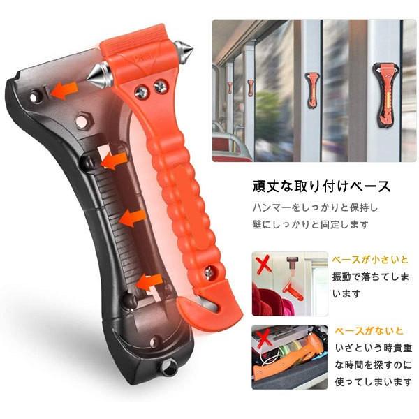 バスなど車内取付ベース付き レスキューハンマー2個セット 車内からの緊急脱出用 ガラス割りハンマー シートベルトカッター ODGK2-YZL072