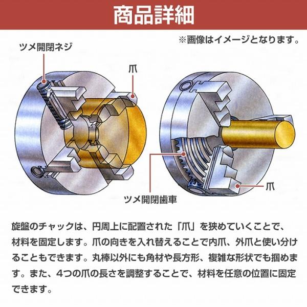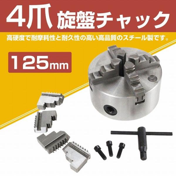 4爪 旋盤チャック スクロールチャック ハンドル付き フライス盤 切削工具 φ 125mm 内爪 外爪 旋盤 卓上旋盤 小型