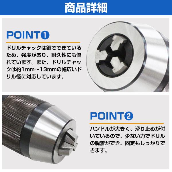 Φ1-13mm対応 キーレスドリルチャック 電動ドリル 穴あけ作業 研磨 彫刻 滑り止め 鋼 固定 脱着 修理 工具 日曜大工 DIY