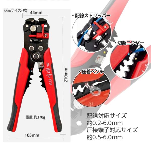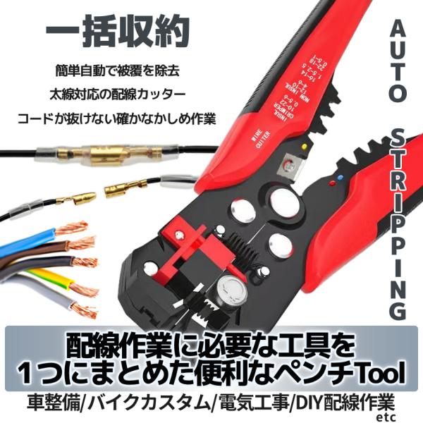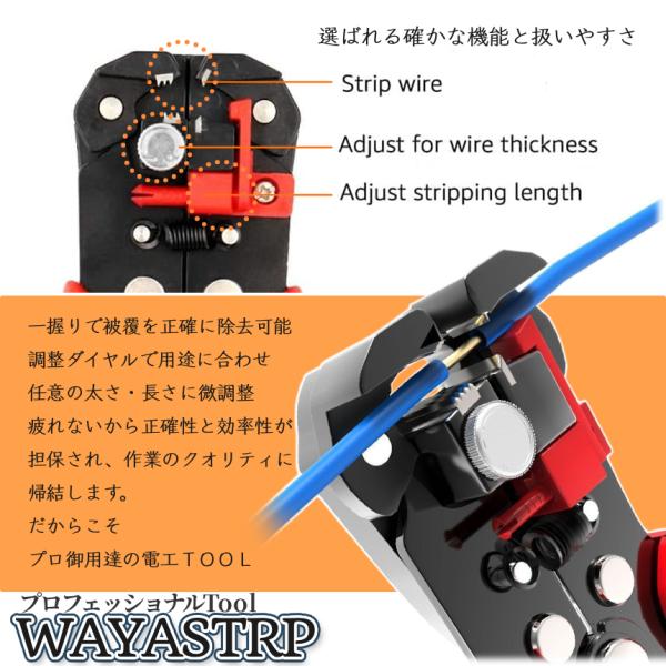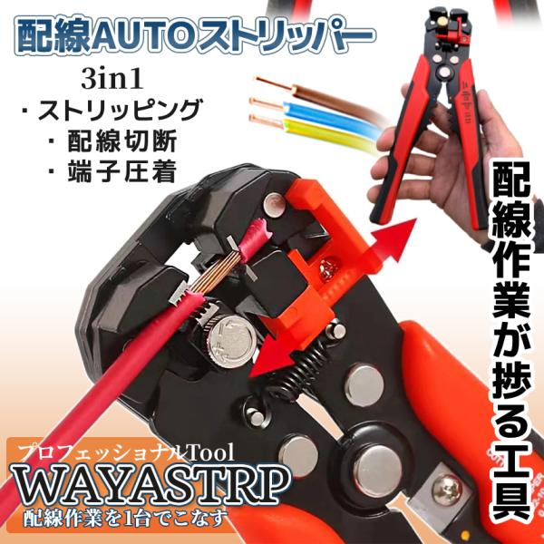 ワイヤーストリッパー 配線 ストリッパー カッター クリンパー 電工ペンチ 自動 3-in-1 オート 被覆 除去 車 バイク 整備 DIY 多機能 万能 工具 ツール WAYASTRP