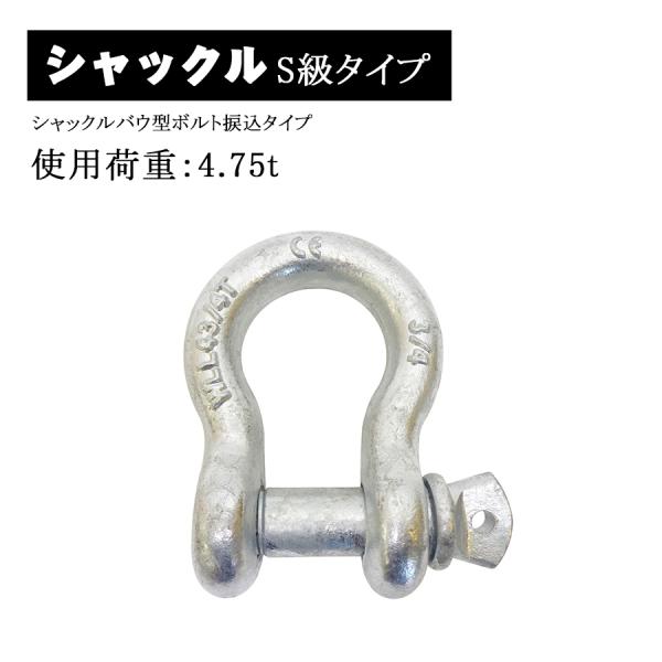 シャックル バウ型 弓型 ボルト 捩込 捻込 ねじ込み タイプ 使用荷重 4.75t 連結 金具 レッカー車 積載車 ローダー レッカー用品 レッカー作業 道具 工具