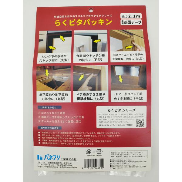 【メール便2個まで】パネフリ工業 らくピタパッキンP型Mサイズ ブラウン BE-1082 | 梅雨 対策 すきま風 ホコリ ゴキブリ 害虫 防虫 キッチン 食器棚 キャビネッ
