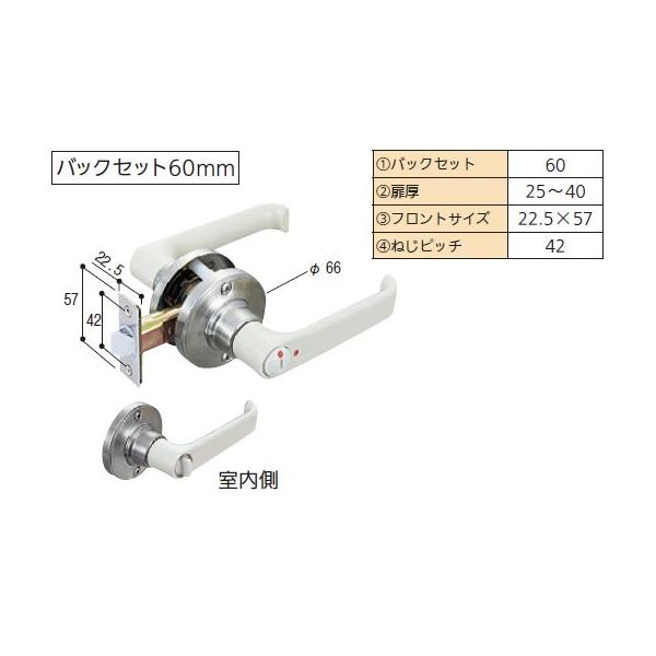 日中製作所 樹脂レバー 表示錠 バックセット 60 221-W-IV-60 | レバーハンドル ドアノブ 種類 交換 取替 室内 ドア レバー