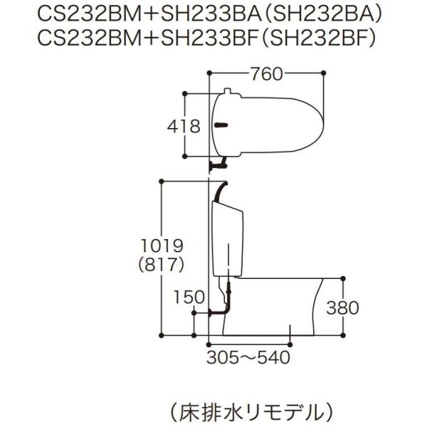 ピュアレストQRリモデル対応 組み合わせ便器(ウォシュレット別売) 床排水 排水芯:305mm〜540mm 一般地 手洗付 カラー:パステルアイボリー