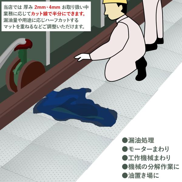 オイル吸着マット 100枚 厚み 4mm 縦400mm 横500mm 油吸い取り 業務用 自動車整備 機械油 油防止 油吸収シート 床 足場 油回収 90.11WS6040-1