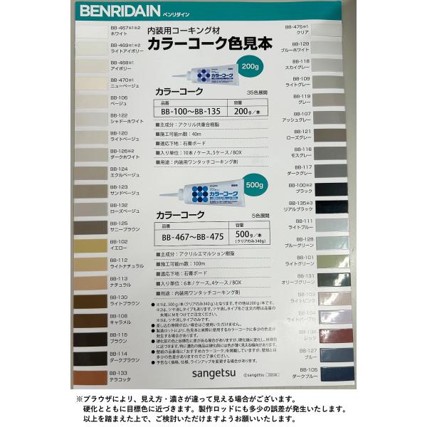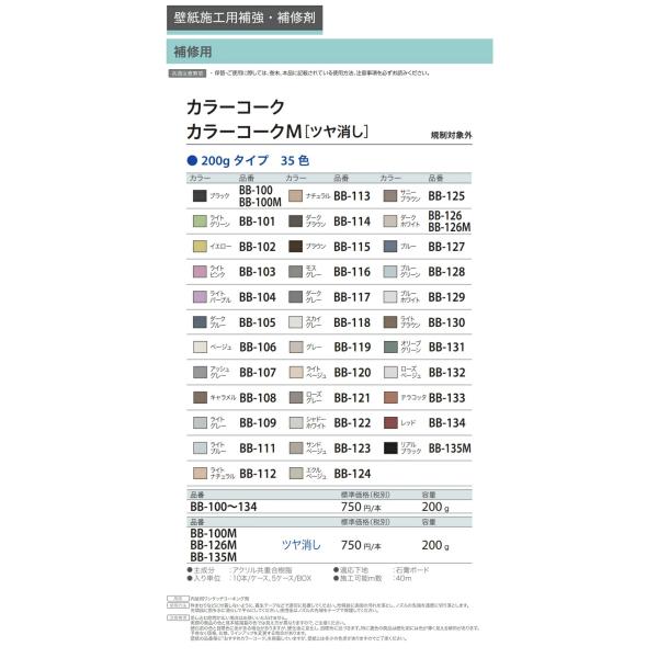 カラーコーク 200g BB-100〜BB-135 サンゲツ ベンリダイン 湿気による壁紙の剥がれを防ぐつや有りタイプ 30色展開 水性 内装用