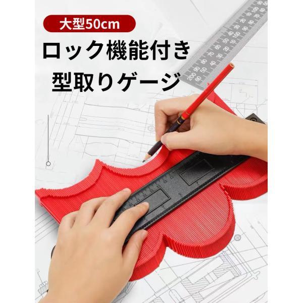 型取りゲージ 測り 輪郭取り 物差し 定規 大工 凸凹測り 曲面 DIY 目盛り付き ロック有り 工具 大型 50cm
