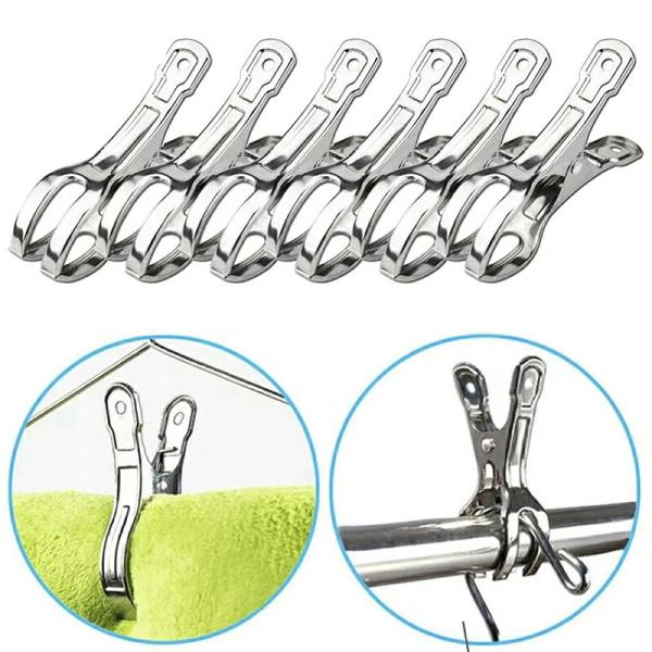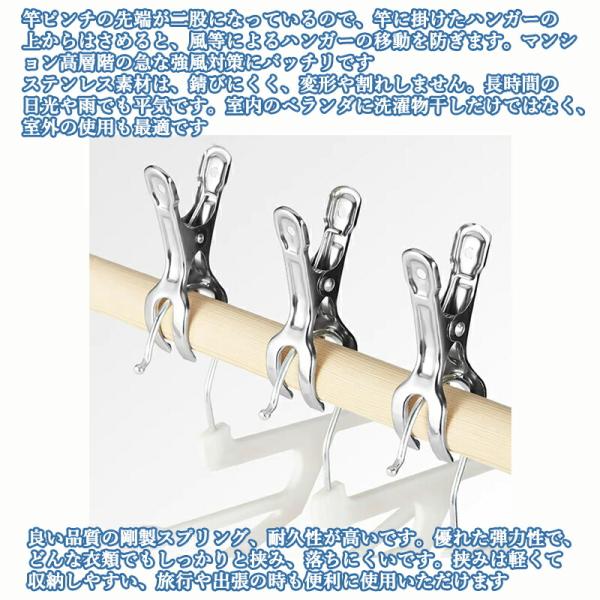 【10個セット】大きいサイズの洗濯バサミ ステンレス 竿ピンチ 強力 防風対策 ハンガー固定用